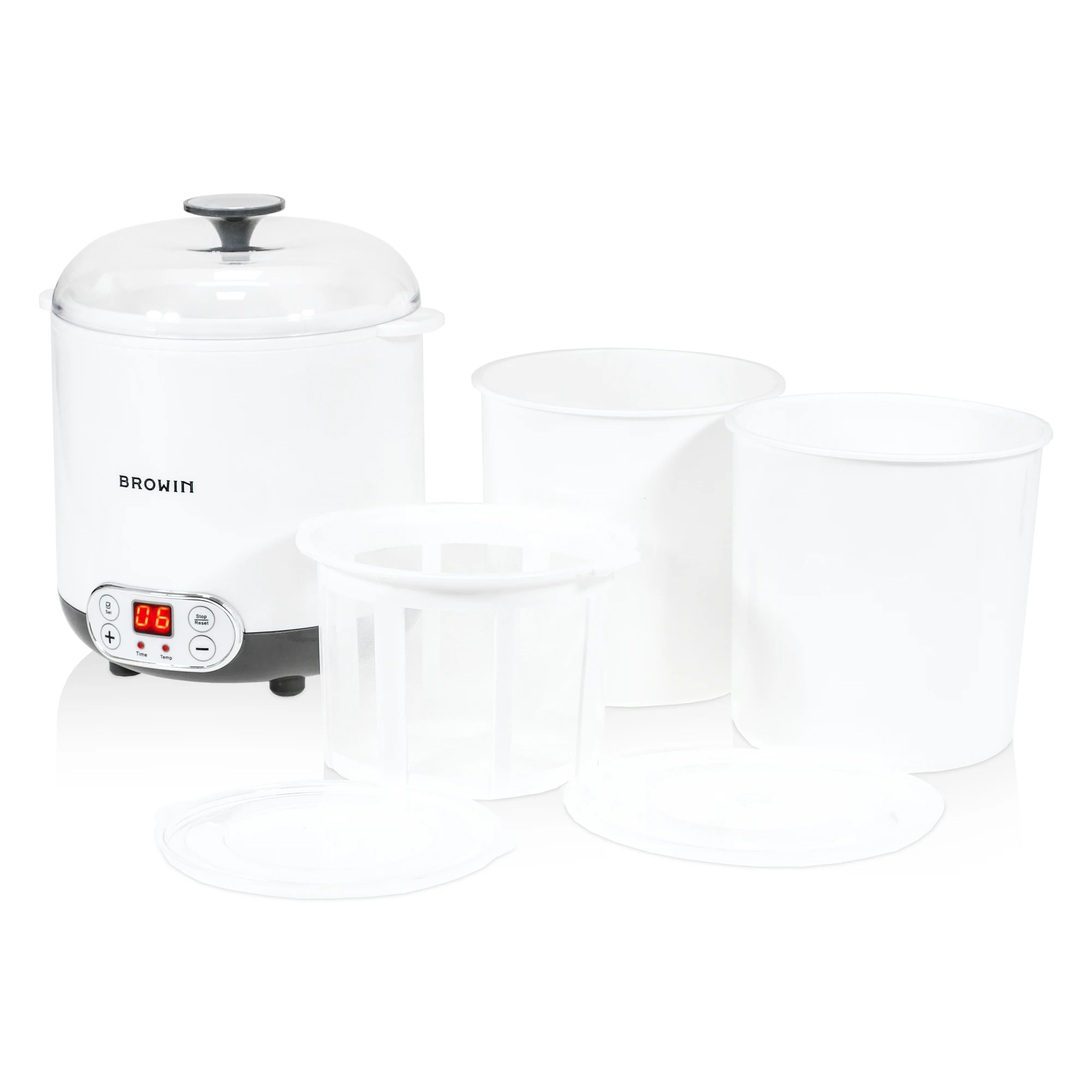 Jame įrengtas laikmatis, leidžiantis nustatyti darbo laiką, ir termostatas, leidžiantis tiksliai reguliuoti jogurto, kefyro ar sūrio brandinimo temperatūrą. Todėl šis jogurto gaminimo aparatas leidžia puikiai kontroliuoti mėgstamų skanėstų gamybos procesą ir lengvai prisitaiko prie jūsų individualių pageidavimų.
