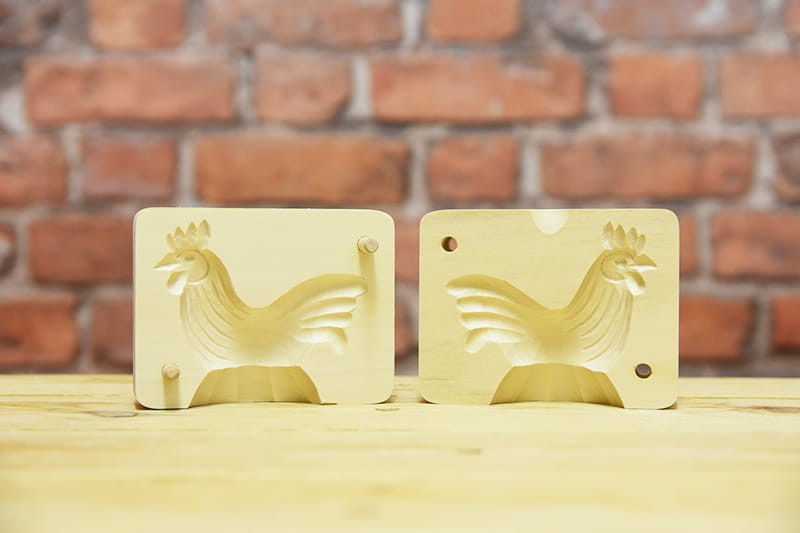 Kalnų vietovėje iš aukštos kokybės medienos rankomis pagaminta sviesto forma. Gražus dizainas padarys įspūdį visiems.