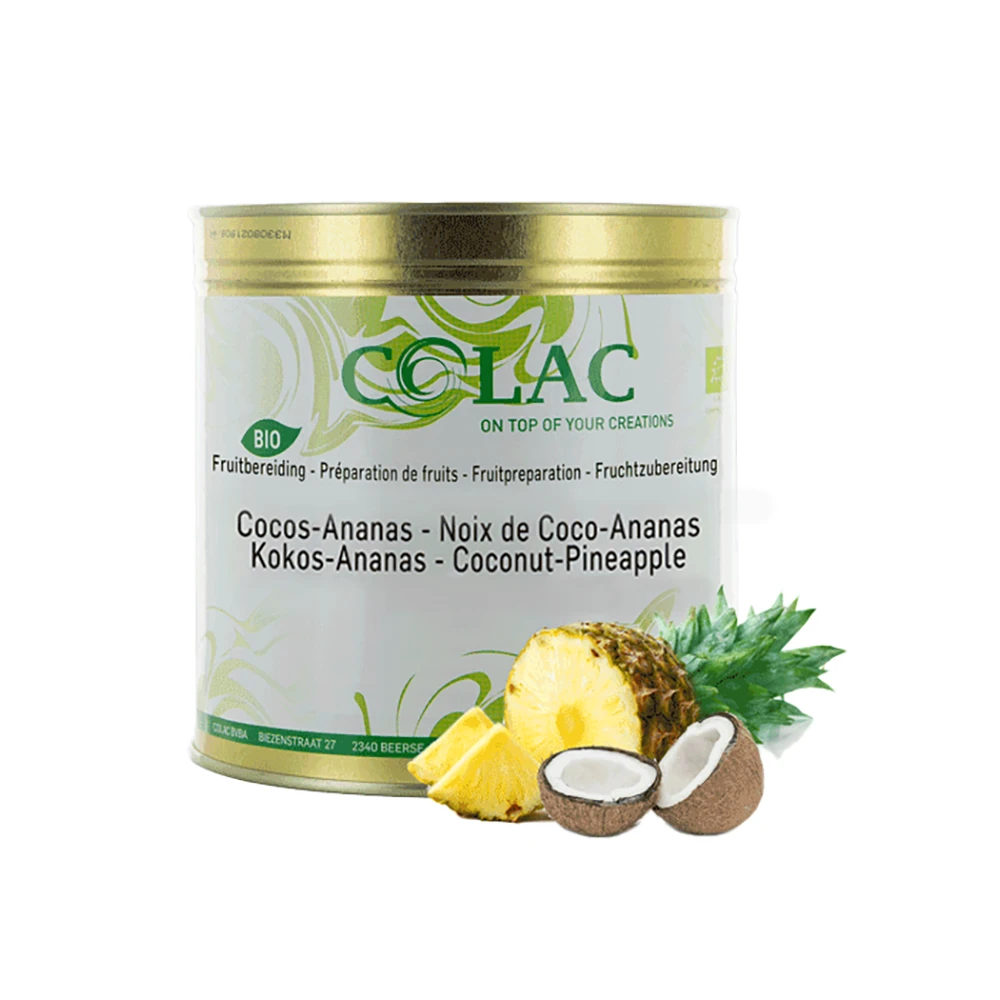 Sudėtis: sacharozė BIO, kokosų pienas BIO (25 %), ananasas BIO (25,0 %), koncentruotos ananasų sultys BIO (5,0 %; atitinka 23,5 % ananasų sulčių BIO), tirštikliai (kukurūzų krakmolas BIO), vanduo, ekologiškos citrinų sultys, tirštiklis (pektinai E440i).