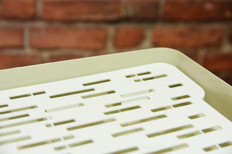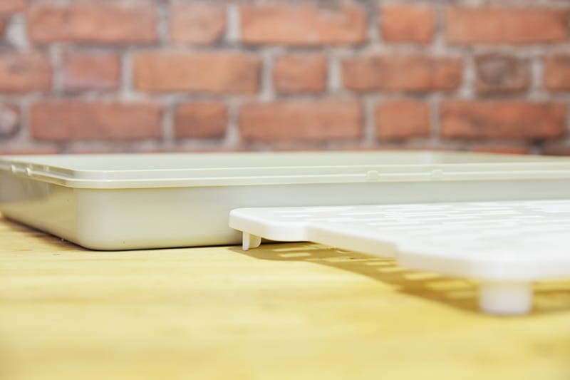 Grotelės su kojelėmis leidžia sūriams laisvai „kvėpuoti“. Dangtis apsaugo nuo pernelyg didelio džiūvimo.