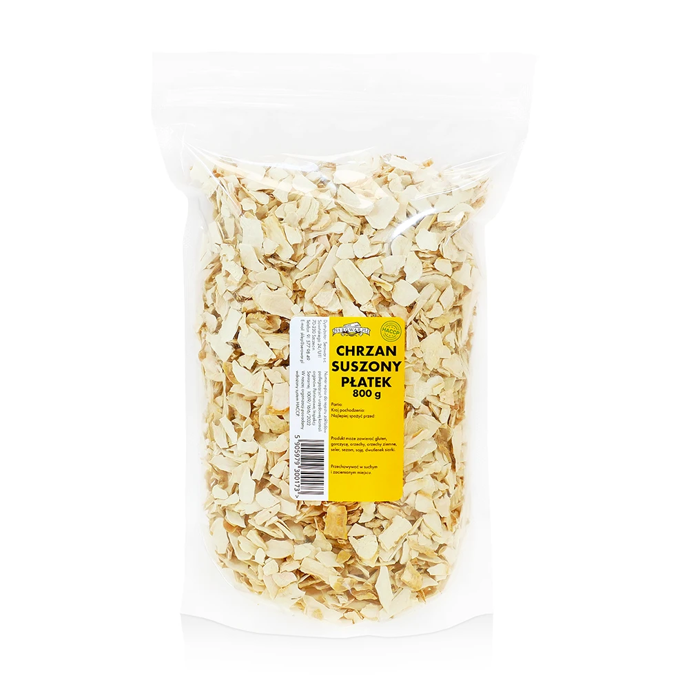 Sudėtis: džiovinta krienų šaknis (dribsniai).