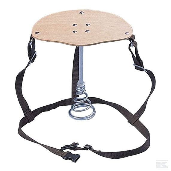 Sėdynė ant plieninės kojos su spyruokle ir profiliuota medine sėdyne.