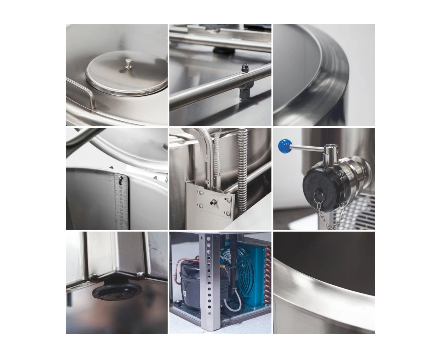 Įrenginiai užtikrina trumpą aušinimo laiką, kad būtų išvengta bakterijų dauginimosi ir pieno rūgštėjimo (pH sumažėjimo). Pienas maišomas specialiu voleliu su motoreduktoriumi tinkamu greičiu, kad būtų pasiekta optimali riebalų homogenizacija ir tolygus pieno aušinimas visoje talpoje be putojimo.
