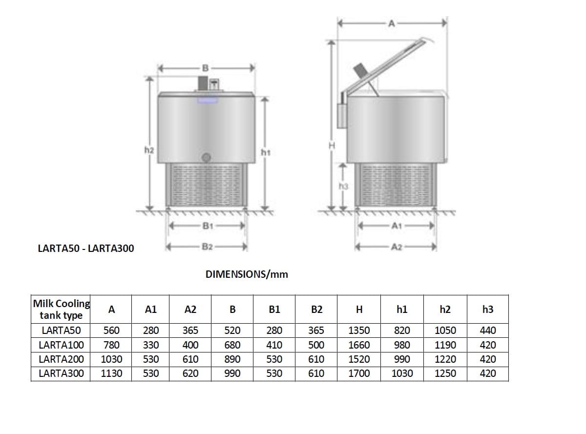 Profesionali „Larta“ pieno aušintuvų serija apima 13 modelių, kurių talpa nuo 50 iki 2500 litrų, taip pat cisternas, galinčias patenkinti kiekvienos pieno ir sūrių gamybos įmonės poreikius.