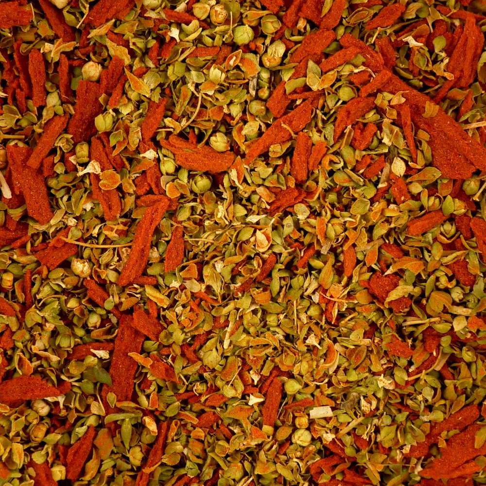 Išskirtinis prieskonių mišinys su intensyviu aromatu ir ryškiu skoniu. Džiovinti pomidorai suteikia saldžiarūgštį charakterį, raudonėlis – Viduržemio prieskonį, o čili – malonų aštrumą.