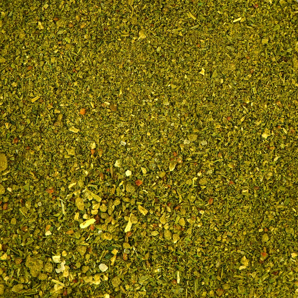 Sudėtis: druska, laiškiniai česnakai, žolelių pipirai (kalendra, čiobreliai, kmynai, bazilikai, čiobreliai, kario prieskoniai), skrudinti svogūnai, raudonoji paprika, svogūnas, juodieji pipirai, baltoji garstyčia, česnakas, cukrus, mairūnas, meilėžolė, petražolės, krapai, natūralus aromatas.
