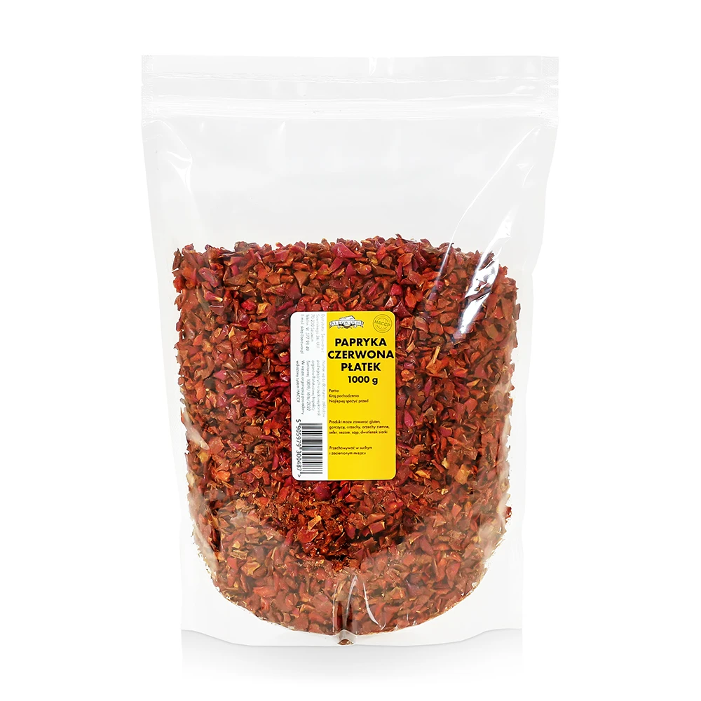 Raudonųjų paprikų dribsniai gaunami džiovinant ir smulkinant vienmetės paprikos vaisius. Jie pasižymi ryškia spalva ir lengvai saldokiu skoniu, suteikiančiu patiekalams ypatingo aromato.