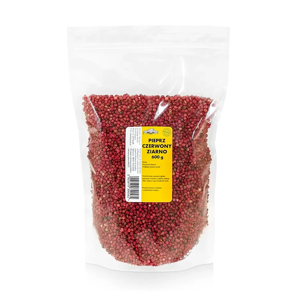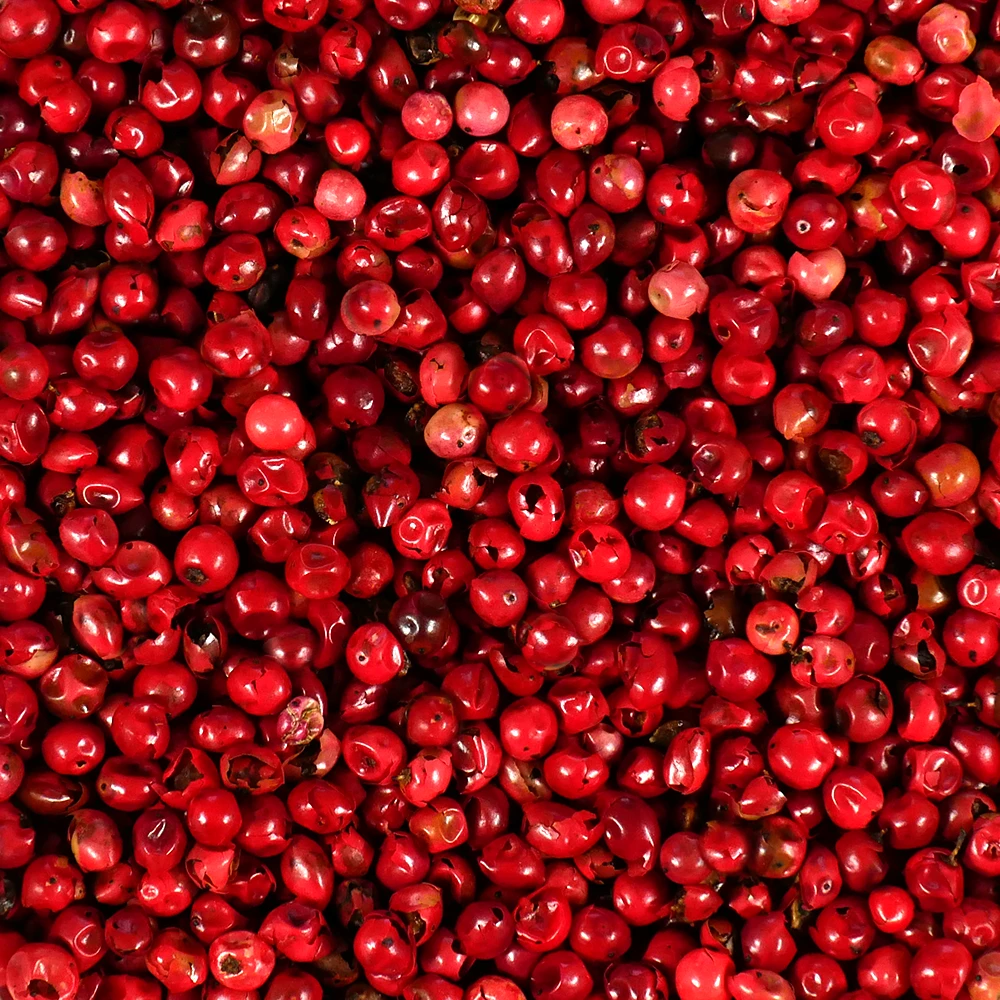 Raudonieji pipirai – sveiki grūdeliai yra vijoklinio augalo vaisiai, labai aromatingi ir vizualiai patrauklūs. Dėl sodrios spalvos jie yra ne tik prieskonis, bet ir patiekalų puošmena. Puikiai tinka sūriams, suteikdami jiems ypatingą skonį ir elegantišką išvaizdą. Taip pat naudojami sriubose, padažuose, salotose, marinatuose bei mėsos ir žuvies patiekaluose. Išvaizda šiek tiek primena spanguoles, todėl yra itin estetiški.