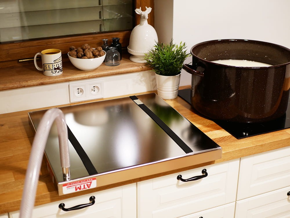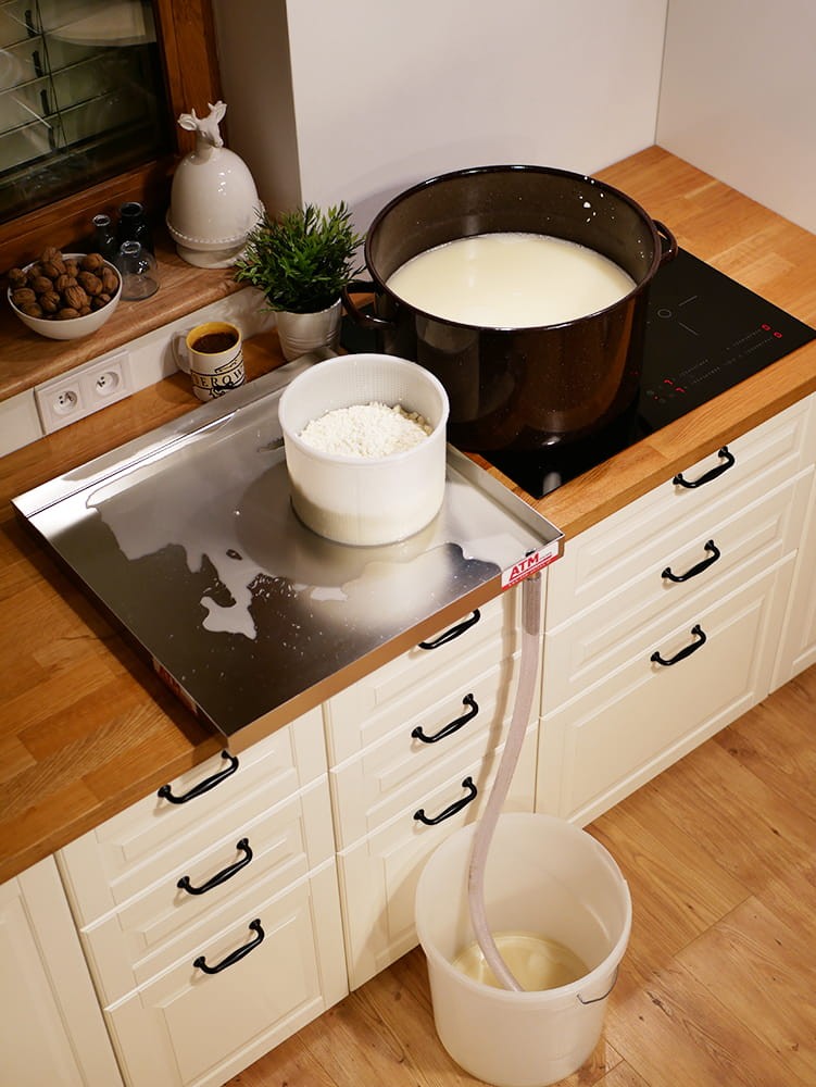 Puikus sūrio pyrago viršus, tinkamas naudoti ir sūrinėje, ir namuose. Sūrį ir kitus pieno produktus gaminti daug lengviau. Apsaugo nuo purslų. Surenka išrūgas iš po pelėsių, indų ir pan.