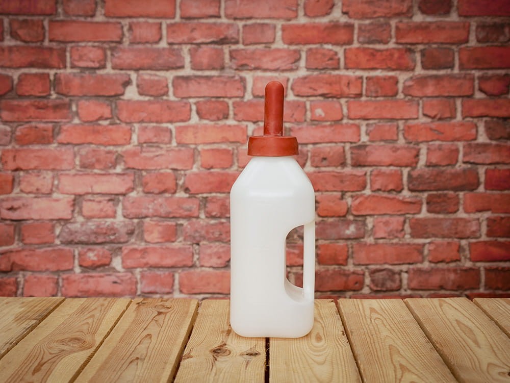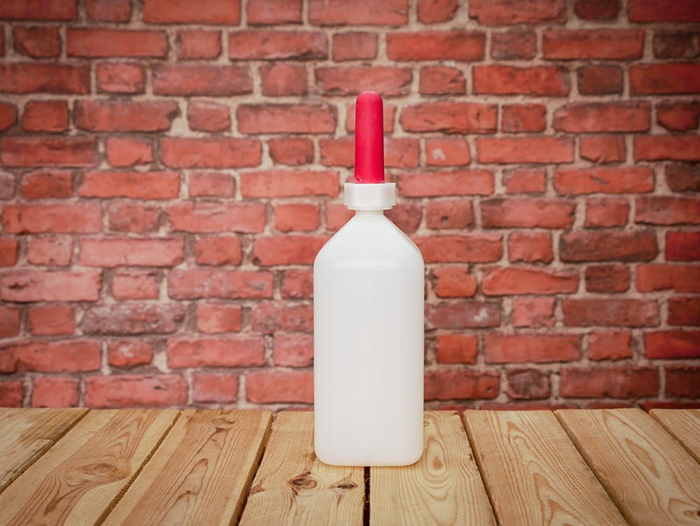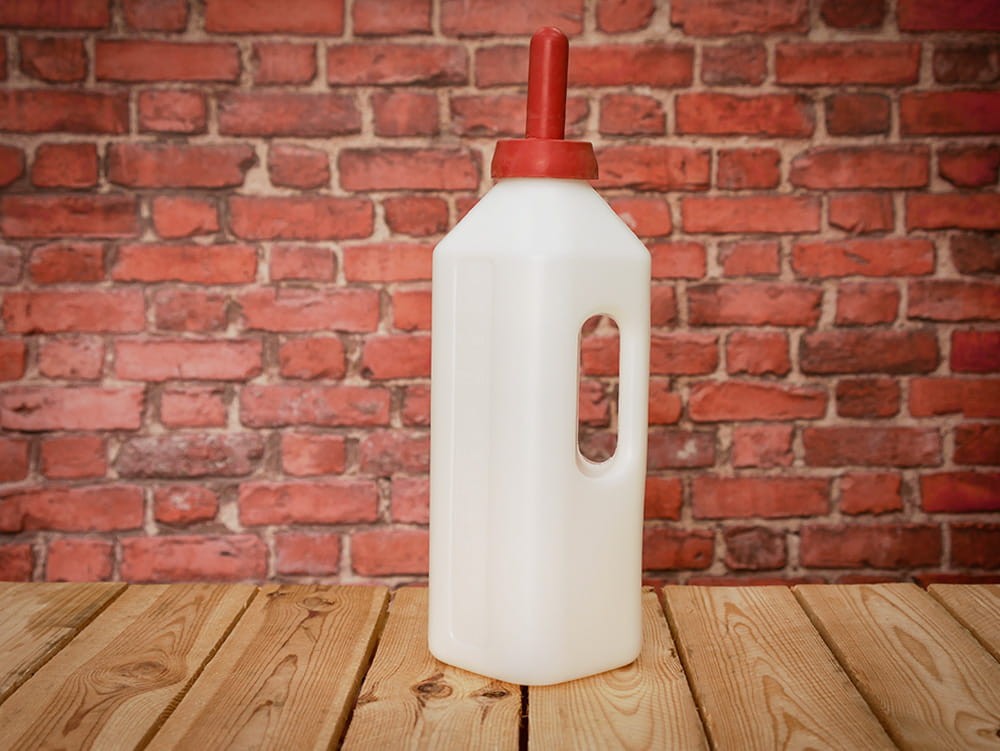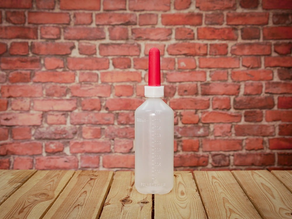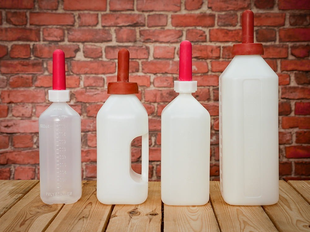 Buteliukas su speneliu veršeliams girdyti. Buteliuke yra skalė. Komplekte su raudonu čiulptuku.
